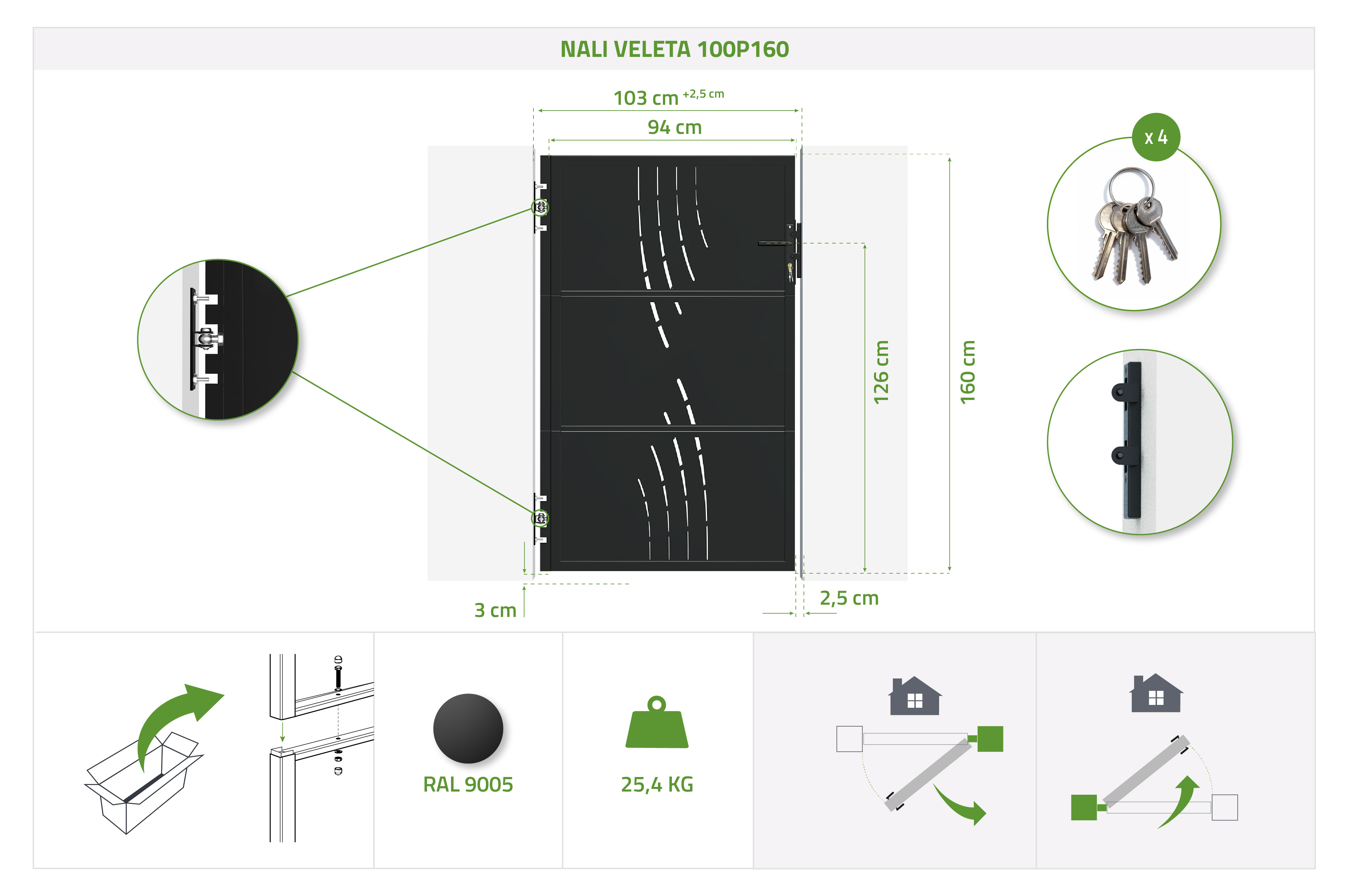 Matt black steel gate 1m NALI VELETA H.160cm 1